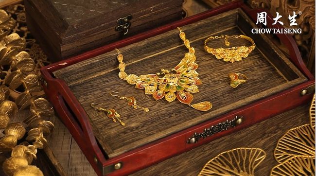 周大生幸福花嫁系列——“凤凰于飞”套系以传统婚嫁文化的凤凰元素为灵感之源。作为中国传统婚嫁文化的标志性符号,凤凰自古以来便被视为吉祥之鸟,象征着高贵、美丽、祥瑞与和平。它不仅见证无数夫妻的琴瑟和鸣,还寄托着对新人白头偕老、举案齐眉的殷切期望。周大生运用行业领先的3D立体花丝工艺,结合体现“家文化”的精致空窗珐琅工艺,精雕细琢“凤凰于飞”的每处细节,使其凤羽层叠有致,栩栩如生,营造出凤凰翩然展翅、翱翔天际的唯美意象。这一设计不仅传递着“成家”与“婚姻美满、阖家幸福”的美好祈愿,更似一阕穿越千年的恋曲,将中式婚礼的典雅庄重和中式浪漫娓娓道来,让传统技艺在现代光影中焕发新生。