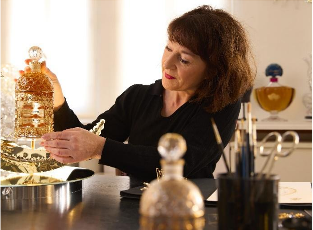 今年,艺术家、雕塑家 Géraldine Gonzalez 选择采用金属、珍珠母贝、水晶、玻璃饰珠等耀眼材质,缔造晶莹珠宝,随光焕现奢金风采。她的作品天马行空,浓蕴巴洛克风格,却又不失实用性,善于运用光影来塑造和诠释创作。在她位于巴黎的工作室中,那些由她手工打造的艺术品仿佛生于幻境,别具匠心诗意。与世家名牌的多次合作为她造就卓越的职业生涯。这位善用光影的艺匠倾情挚献全新娇兰臻作,为传奇蜂印瓶披就焕然一新的华美装饰。