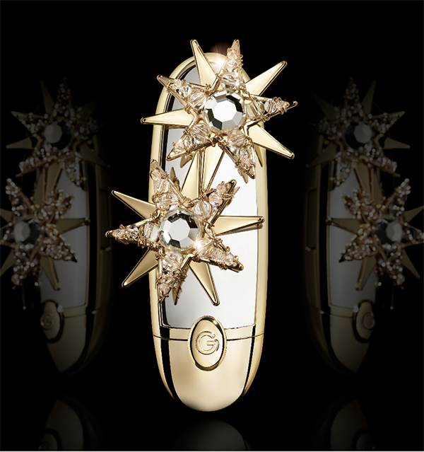 在 Géraldine Gonzalez 的灵感启发下,法国娇兰臻彩宝石唇膏也推出了珍藏版艺作。法国娇兰臻彩宝石唇膏礼盒(星光童话珍藏版)的镜面外壳上饰有两颗璀璨华贵的星星。珍藏版带编号,仅售 670 份。星光童话珍藏版配有三款经典色号:03 烟熏玫瑰色、214 心动番茄红和510 明艳正红色。