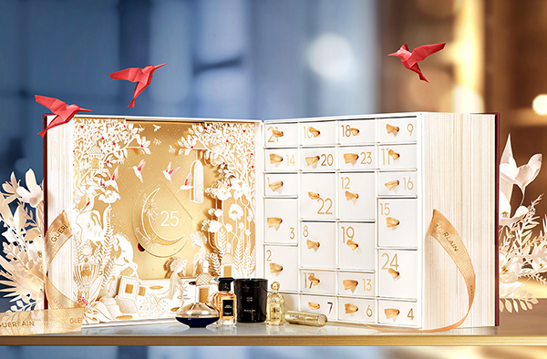 限量发售的日历倾呈香水、彩妆和护肤品等 25 款惊喜臻礼。臻选品牌经典之作,“娇”宠每一天。在 12 月 25 日这页,繁星点点,缀饰皎洁月光,打开纸窗,奢华臻礼赫然入目:法国娇兰臻彩宝石唇膏 510 绯红樱桃色(经典缎光)及其尽显装饰艺术风格的唇膏外壳。