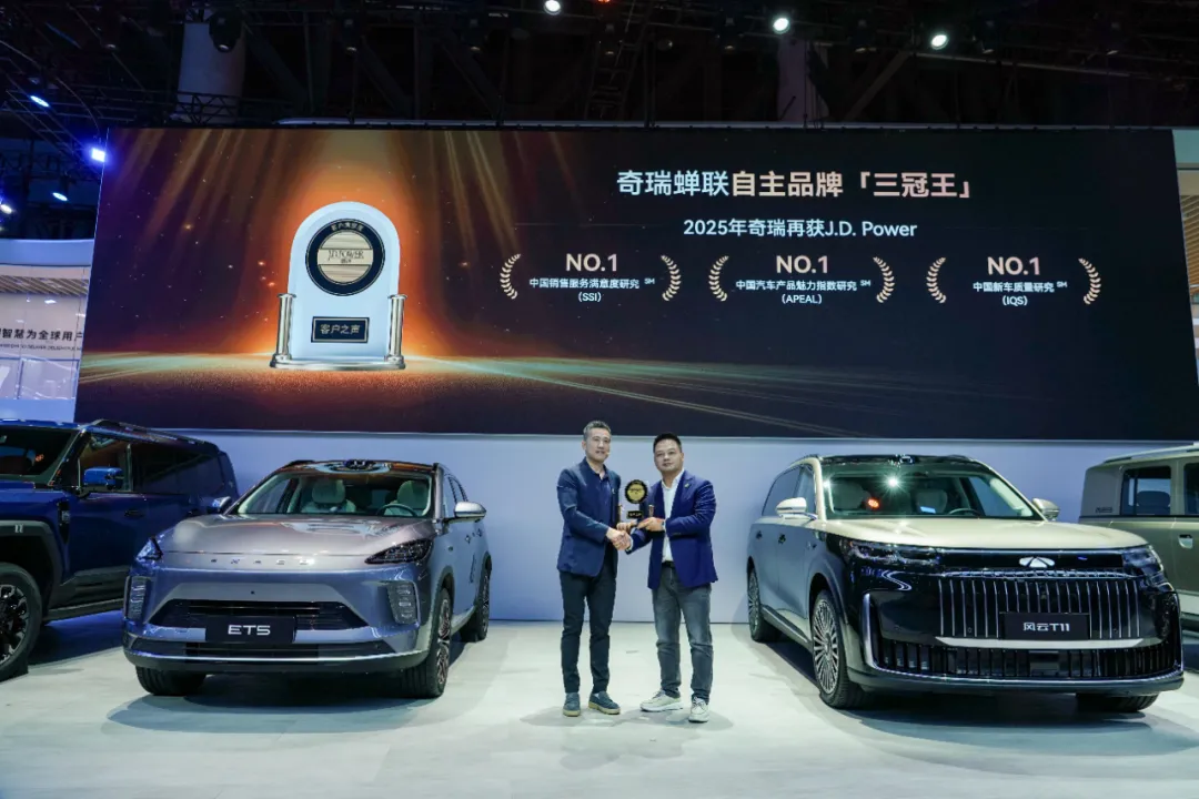 至此,奇瑞品牌在2025年已先后将 J.D. Power 中国新车质量研究(IQS)、销售服务满意度研究(SSI)、汽车产品魅力指数研究(APEAL)、售后服务满意度指数(CSI)四项自主乘用车品牌冠军收入囊中,成为行业内唯一获得“四冠王”的自主品牌!